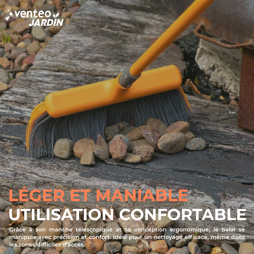 Le Balai du Cantonnier est conçu pour 👉🏼 nettoyer efficacement vos espaces extérieurs : jardin, terrasse, allées, routes ou encore pour ramasser les feuilles mortes.