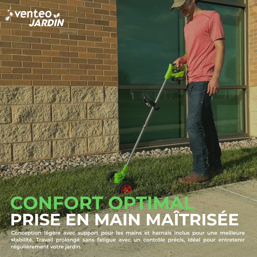 Sa conception compacte et ergonomique en fait une solution idéale pour les petits et moyens jardins. Il permet de couper, ajuster et entretenir vos espaces verts avec efficacité, tout en limitant les efforts. Silencieux et pratique, il constitue une alternative moderne aux outils traditionnels plus encombrants.